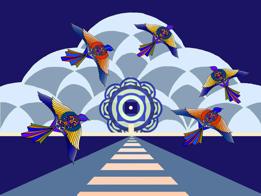Robin de Lavis is a multi-disciplinary artist who lives and works from Hornby Island off the west coast of Canada. Her artistic training has included Fine, Applied and Computer Arts. She has been the recipient of many awards including a full scholarship to complete a Diploma of Classical Animation from the Vancouver Film School. All the elements of her years of study and practice are expressed through the medium of paint and through digital imagery, especially mandalas, created on the computer.